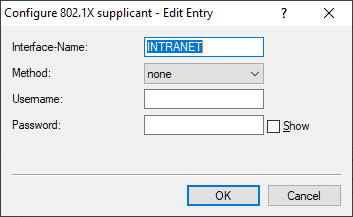 - The user name to use to authenticate at the 802.1X infrastructure.