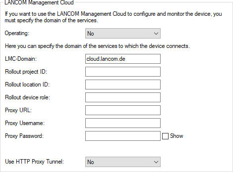 Settings that relate to the configuration and monitoring of your device via the LANCOM Management Cloud (LMC) are located under Management > LMC.
