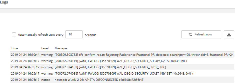 You reach the "Logs" area by means of the Diagnosis > Logs item in the sidebar.