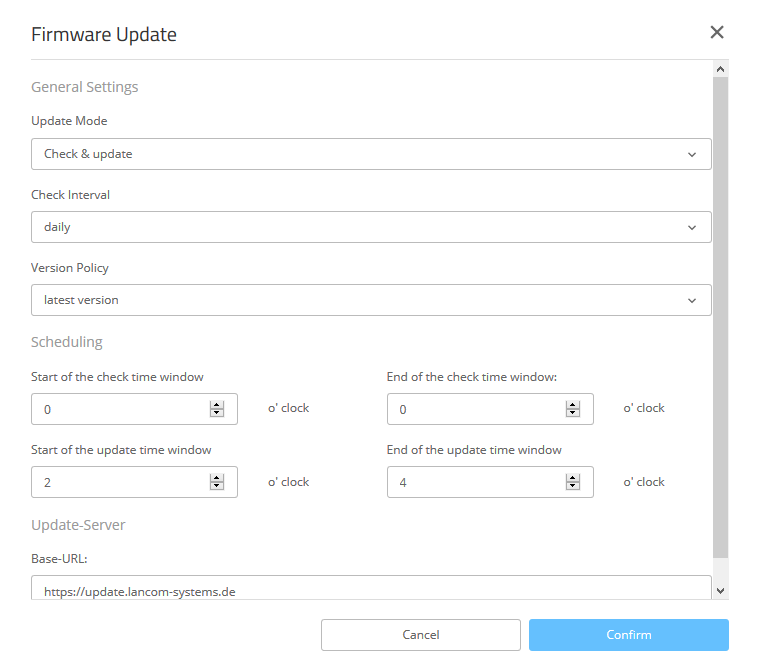 - The availability of a new update is signaled to the user in the LCOS LX menu tree and via syslog.