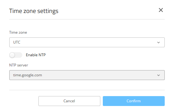 - Here you select whether the time should be obtained from a time server by means of the network time protocol (NTP).