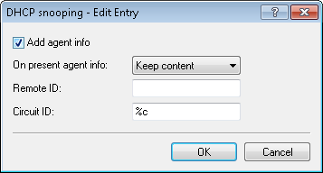 - %v: Inserts the VLAN ID of the DHCP request packet. This VLAN ID is sourced either from the VLAN header of the DHCP packet or from the VLAN ID mapping for this interface.