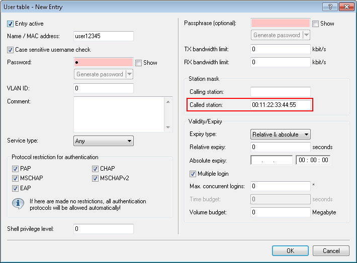 As the "Called station", you add the ID of the AP that should enable access by means of the corresponding voucher.