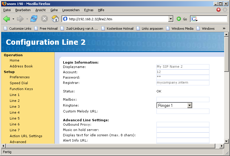 - Registrar: Internal VoIP domain for the LANCOM.