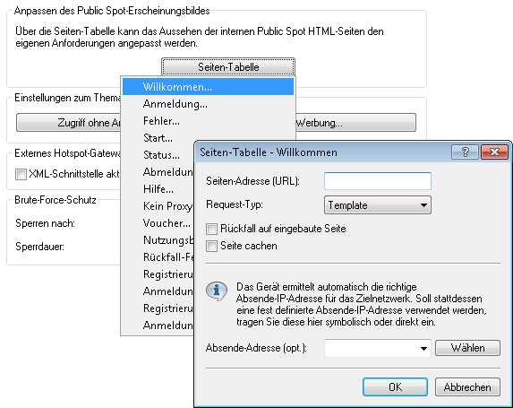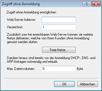 In addition to freely available web servers, you can define other networks and special sites which your customers can access without having to log on.