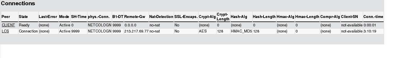 The status displays show whether VPN-Pathfinder technology is being used on each of the active VPN connections.