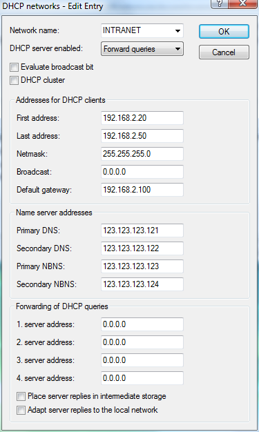 To configure the DHCP server for forwarding, refer to the following menus: