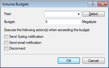 To set a data volume for communications with a remote site, click on Volume budgets and then Add.