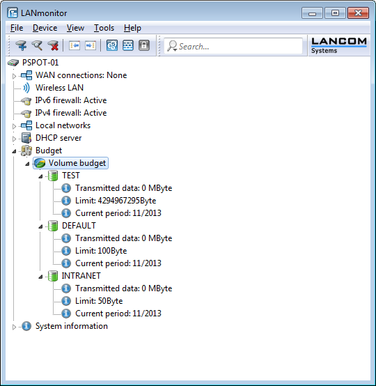 At the change of the month, the device archives the data for the previous month and resets the counter to zero for the current month. You can view the current data volume and the archived information in LANmonitor or in the WEBconfig status menu.
