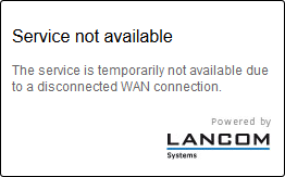 With regard to users who have not yet authenticated at the Public Spot, you have the option of informing them not only of general login errors, but also of WAN connection errors. This gives potential users information about the lack of network availability in advance. This version of the error page appears whenever the Public Spot module detects a failure of the WAN connection.