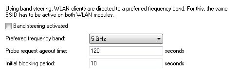 With an AP as of LCOS version 9.00, you can delay the band steering to the 2.4-GHz band under Wireless LAN > Band steering.