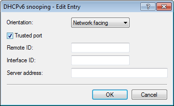 - This is where you enable or disable DHCPv6 snooping. The following options are possible: