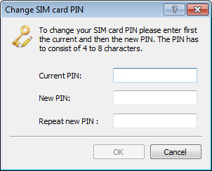 2. From the menu bar, choose Device > Change SIM card PIN. A new dialog box opens.
