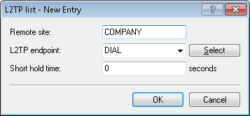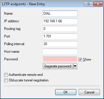 1. Under Communication > Remote sites in the table L2TP endpoints create an entry for an LNS as the remote L2TP gateway.