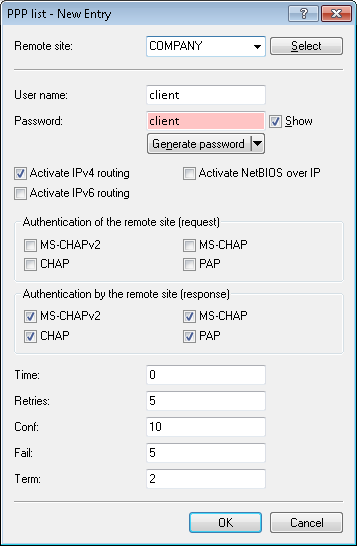 It is possible to connect several remote sites with an L2TP tunnel. This allows multiple PPP sessions to be transported through an L2TP tunnel. For this purpose, configure in this table several remote sites with the same L2TP endpoint.