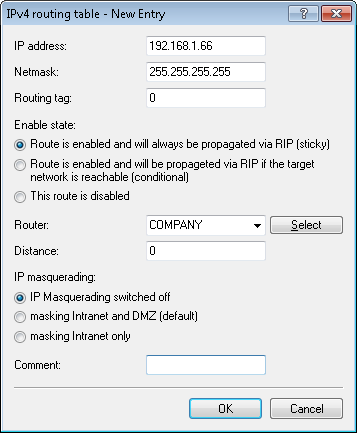 4. For this site, go to Configuration > IP router > Routing and create an entry in the corresponding IPv4 or IPv6 routing table.