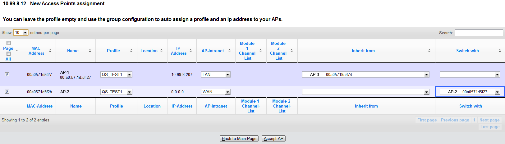 As of LCOS 9.00, WLCs have a revised Setup Wizard Assign Access Points to Profiles, which makes it easier to add new APs via WEBconfig. Just a few mouse clicks with the new Setup Wizard allows you to
