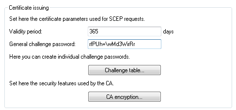 The challenge password of the device configured as SCEP CA is located in its configuration under Certificates > Certificate handling > General challenge password.