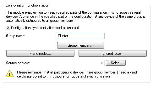 Important: In order for the configuration synchronization to function, it is absolutely necessary for the IP address of the device to be included in the certificate's subject.