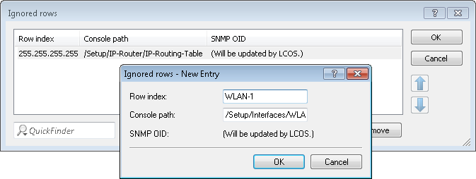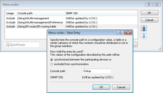 Under "Ignored rows" you can optionally specify the rows of a table that should be excluded from synchronization. Example: The default route on VPN gateways, which should be different for each gateway. The rest of the routing table can be synchronized by making an entry in the Menu nodes.