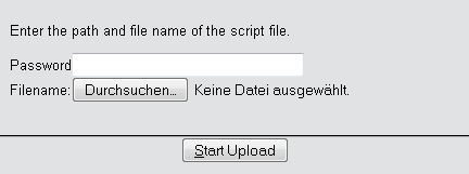 If the script file is encrypted, enter the appropriate password and click on Start upload.