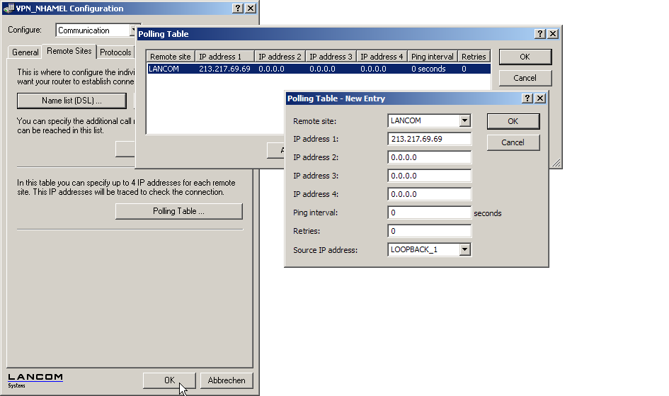 WEBconfig: LCOS menu tree / Setup / WAN E Polling table