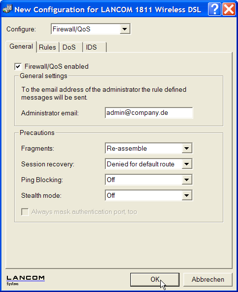 FROM: LANCOM_Firewall@MyCompany.com TO: Administrator@MyCompany.com SUBJECT: packet filtered