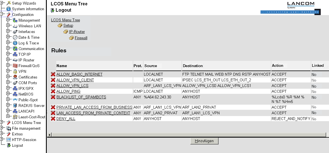 - WEBconfig: Setup / IP router / Firewall / Rules