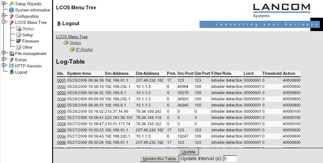 If you call up the logging table via LANmonitor, it looks like the following depiction: