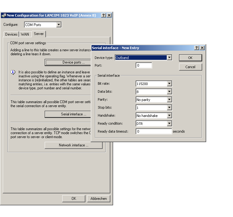 LANconfig: COM ports / Server / Serial interface