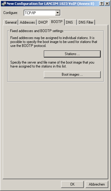 You can find the parameters for configuring BOOTP in LANconfig in the configuration area "TCP/IP" on the "BOOTP" tab.