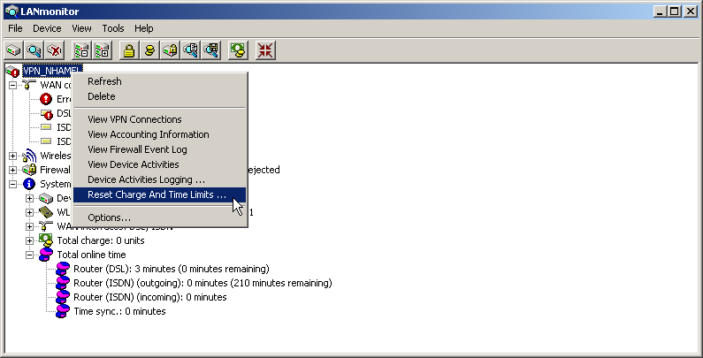 Click with the right mouse button on the error in LANmonitor and select in the menu the entry 'Reset Charge And Time Limit'