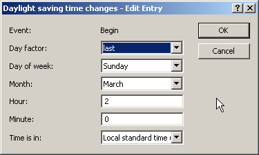 Note: In the last hour of daylight-saving time or the first hour that follows in standard time, it is possible for time entries to be ambiguous. If the time is acquired via ISDN or set manually during this time, then it is always assumed that the time entry is in daylight-saving time.