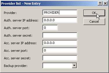 When configuring a public spot (enable using software option for the LANCOM access points), user registration data can be forwarded to one or more RADIUS servers. These are configured in the provider list. The registration data individual RADIUS servers require from the clients is not important to the LANCOM access point since this data is passed on transparently to the RADIUS server.
