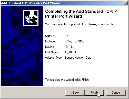 To use the printer at the USB port over the network, the printer drivers on the computers have to be connected with a corresponding printer connection. The following is a description of the setup under Windows XP; the configuration under Windows 2000 is similar. Controlling printers via TCP/IP ports with older version of Windows is rather unsatisfactory.