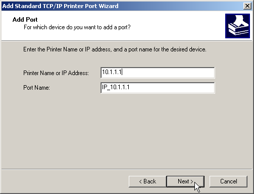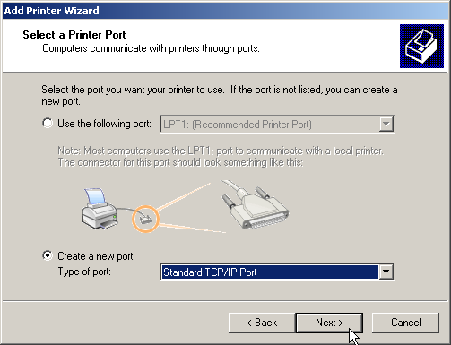 1. Select the option to add a new printer port.