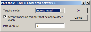 - Ingress-mixed: Arriving (ingress) packets may or may not have a VLAN tag; outbound (egress) packets are never given a VLAN tag.