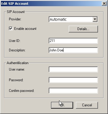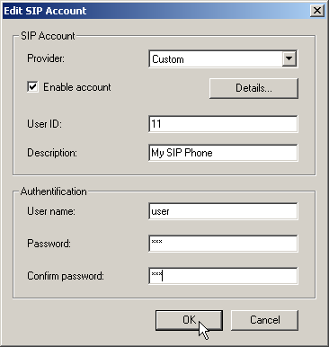 1. Enter the SIP-account user name and password for logging in to the SIP PBX.