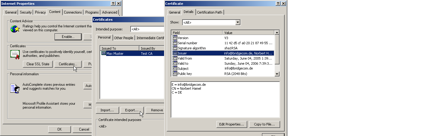 Note: If you are reconfiguring a remote device for certificate support with the method described below, and that device can only be reached via a VPN tunnel, then it is imperative that you reconfigure the remote device first before adjusting the connection in the local device. Changing the local configuration first would make the remote device unattainable!