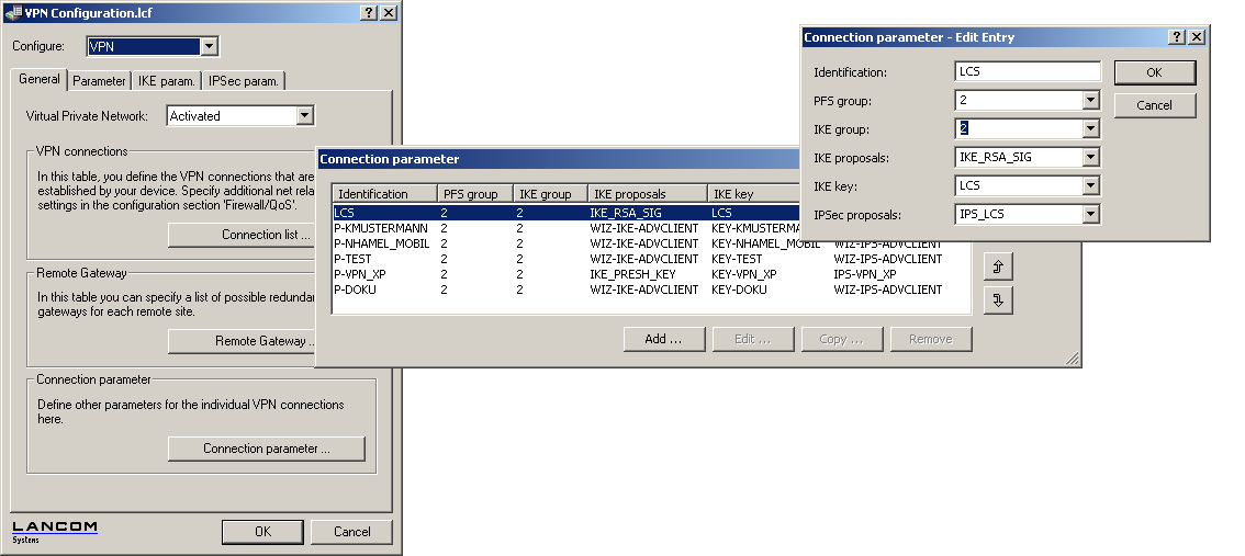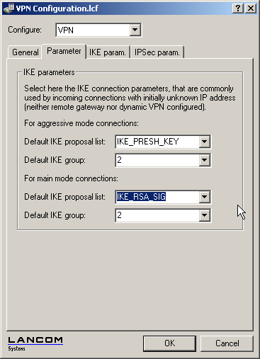 LANconfig: VPN / IKE param. / IKE proposals