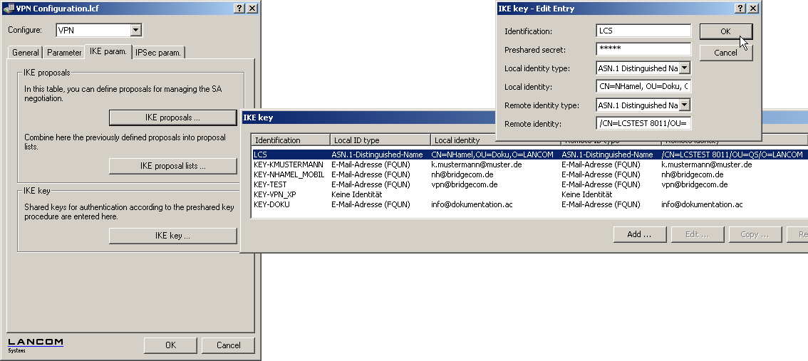 LANconfig: VPN / IKE-Param. / IKE key