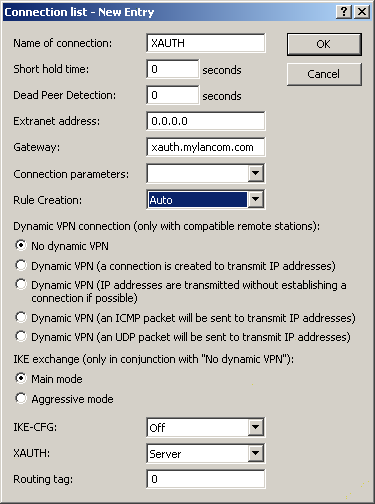 The application of the XAUTH protocol is set up separately for each VPN remote site. Only the XAUTH operating mode is specified.