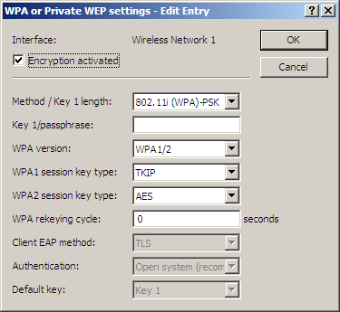 - WPA1 session key type If '802.11i (WPA)-PSK' has been entered as the encryption method,