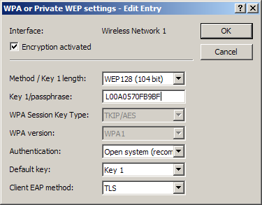 For access to a WLAN, the appropriate encryption methods and key must be set in the client station.