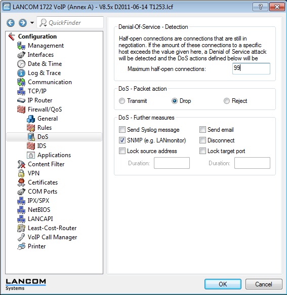 LANconfig: Firewall/QoS / DoS