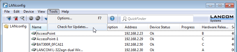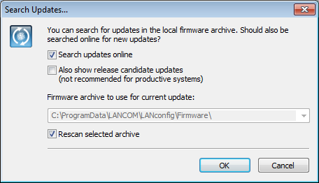 LANconfig searches the local firmware archive for updates. Optionally, you can extend the search with the following items:
