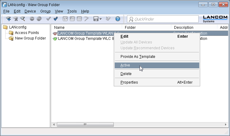 Enable or disable the selected group configuration with the menu item Group > Active.