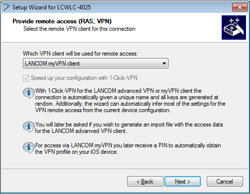 This is how to use the Setup Wizard to provide an access account for a VPN client on an iOS device: