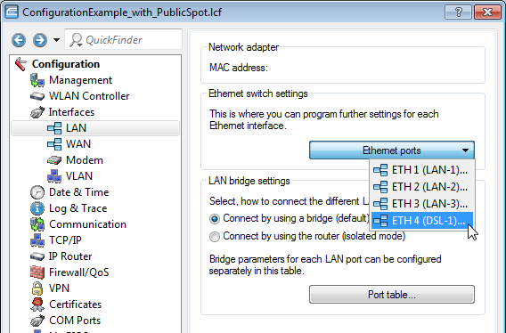 The configuration of a Public Spot can be greatly simplified if the payload data sent from the WLAN to the controller is routed through a WLC tunnel. A Public Spot can, for example, provide guests with Internet access in parallel with, but separated from, an internal wireless LAN.