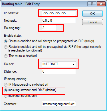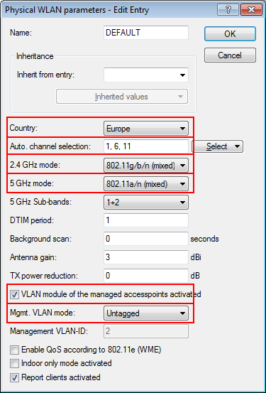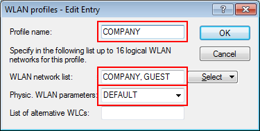 The aim of the configuration: A WLAN client that associates with the internal SSID should have access to all internal resources and the Internet via the central gateway. The access points break-out the payload data from the internal clients locally and pass it on directly to the LAN. The guests' WLAN clients associate with the Public Spot. The access points send the payload data from the guest clients through a WLC tunnel directly to the WLAN controller, which uses a separate WAN interface for Internet access.